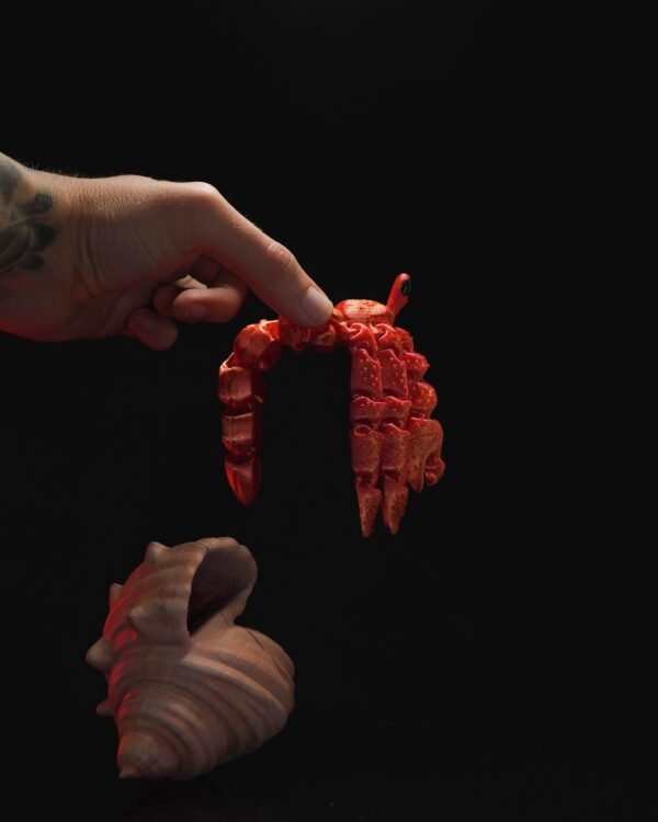 O Caranguejo Eremita Articulado é uma peça cheia de personalidade, feita com riqueza de detalhes e articulações que o tornam ainda mais realista e divertido.