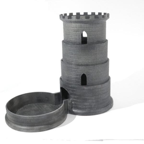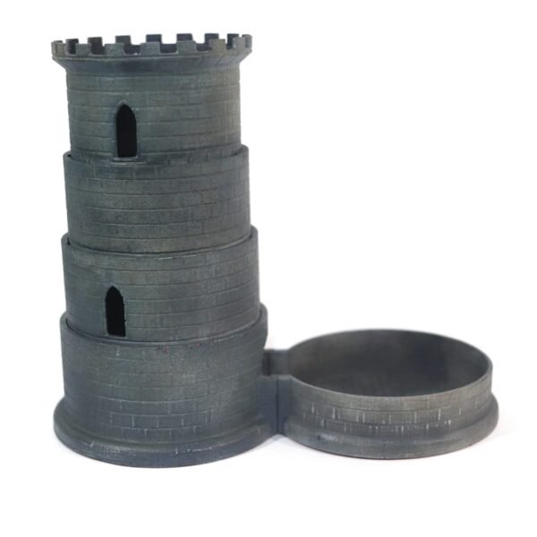 Leve suas partidas de RPG e jogos de tabuleiro a outro nível com esta Torre de Dados Retrátil. Fácil de transportar e ideal para carregar na mochila, ela combina praticidade com um visual clássico de torre de pedra.